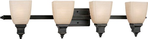 Product Descriptionp/p5057-04-64 Features: -Four light vanity light. -Bordeaux finish. -Rustic umber glass shade. Specifications: -Accommodates (4) 100W medium bulb. -Overall dimensions: 8.25'' H x 37'' W x 6.75'' D.