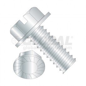10-24X1/2 Slotted Indented Hex Washer Head Serrated Machine Screw Fully Threaded Zinc. Machine Screws are designed to go through a hole or nut that is pre-tapped to form a mating thread for that screw. Indented hex washer head offers advantages of hex head, plus greater protection to mating surface.